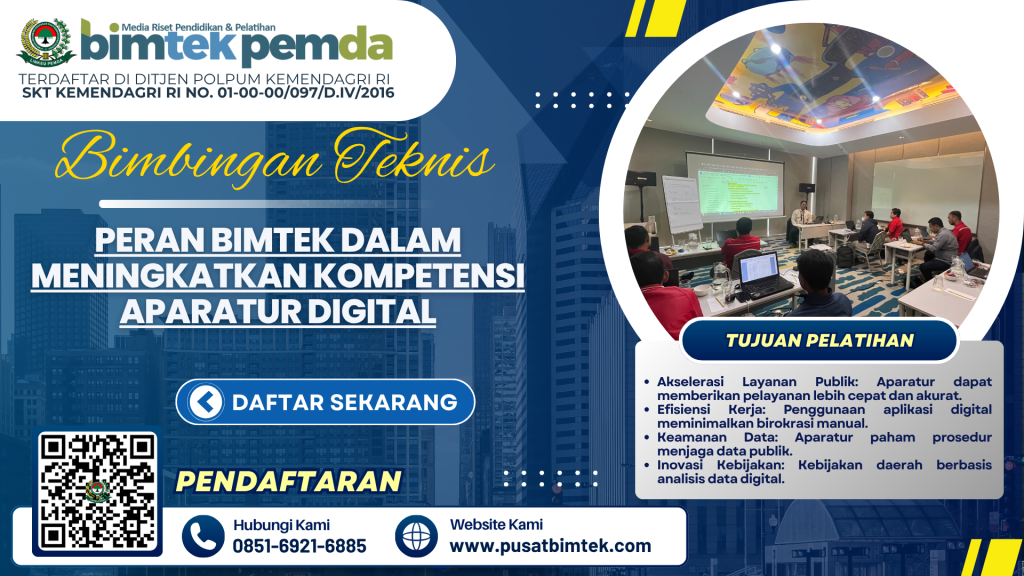 Transformasi digital di sektor pemerintahan daerah tidak dapat berjalan optimal tanpa sumber daya manusia (SDM) yang memiliki kompetensi digital. Aparatur pemerintah, baik di kabupaten maupun kota, menjadi ujung tombak dalam penyelenggaraan layanan publik berbasis elektronik. Oleh karena itu, bimbingan teknis (Bimtek) berperan penting dalam meningkatkan kemampuan digital aparatur agar mampu mengel...